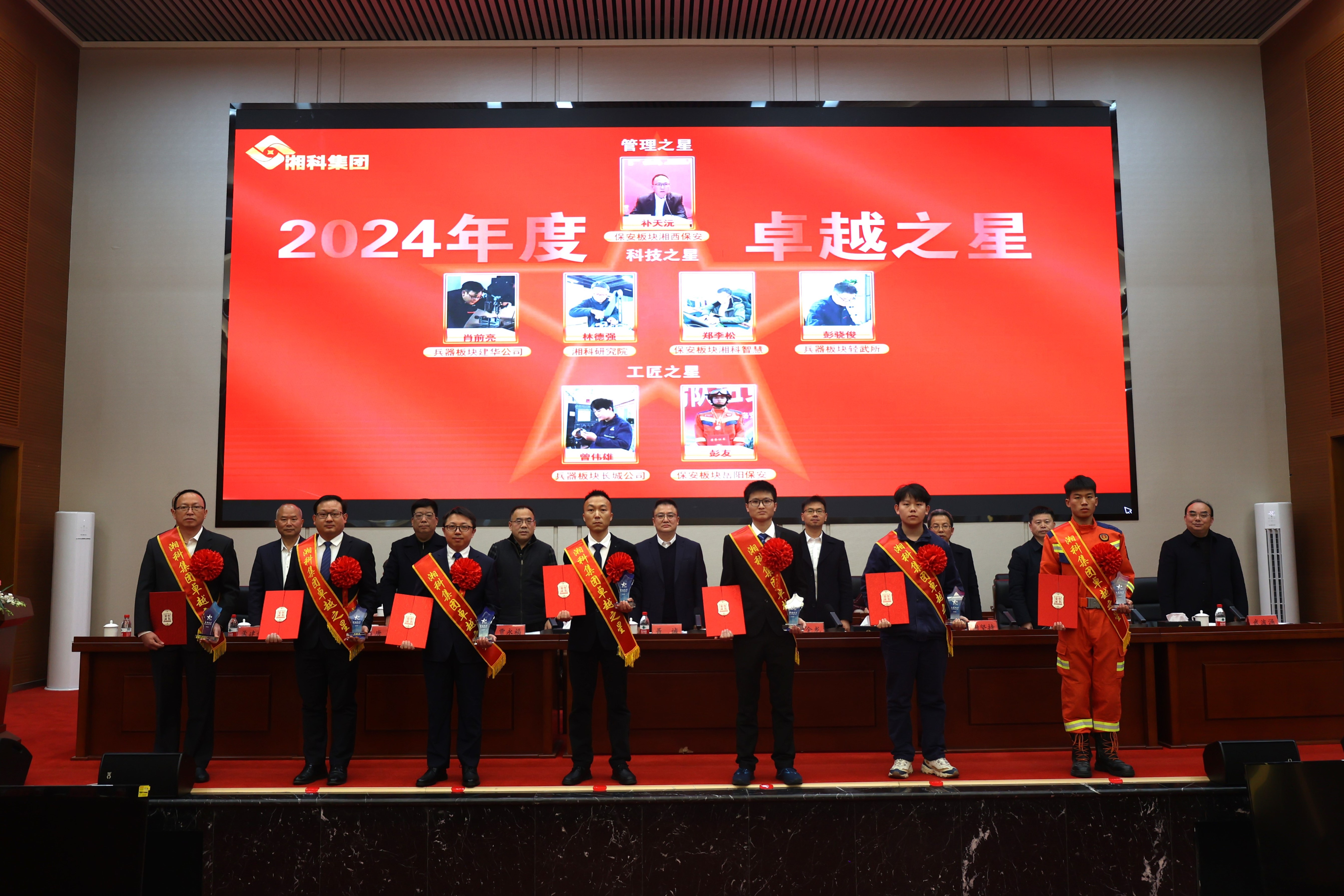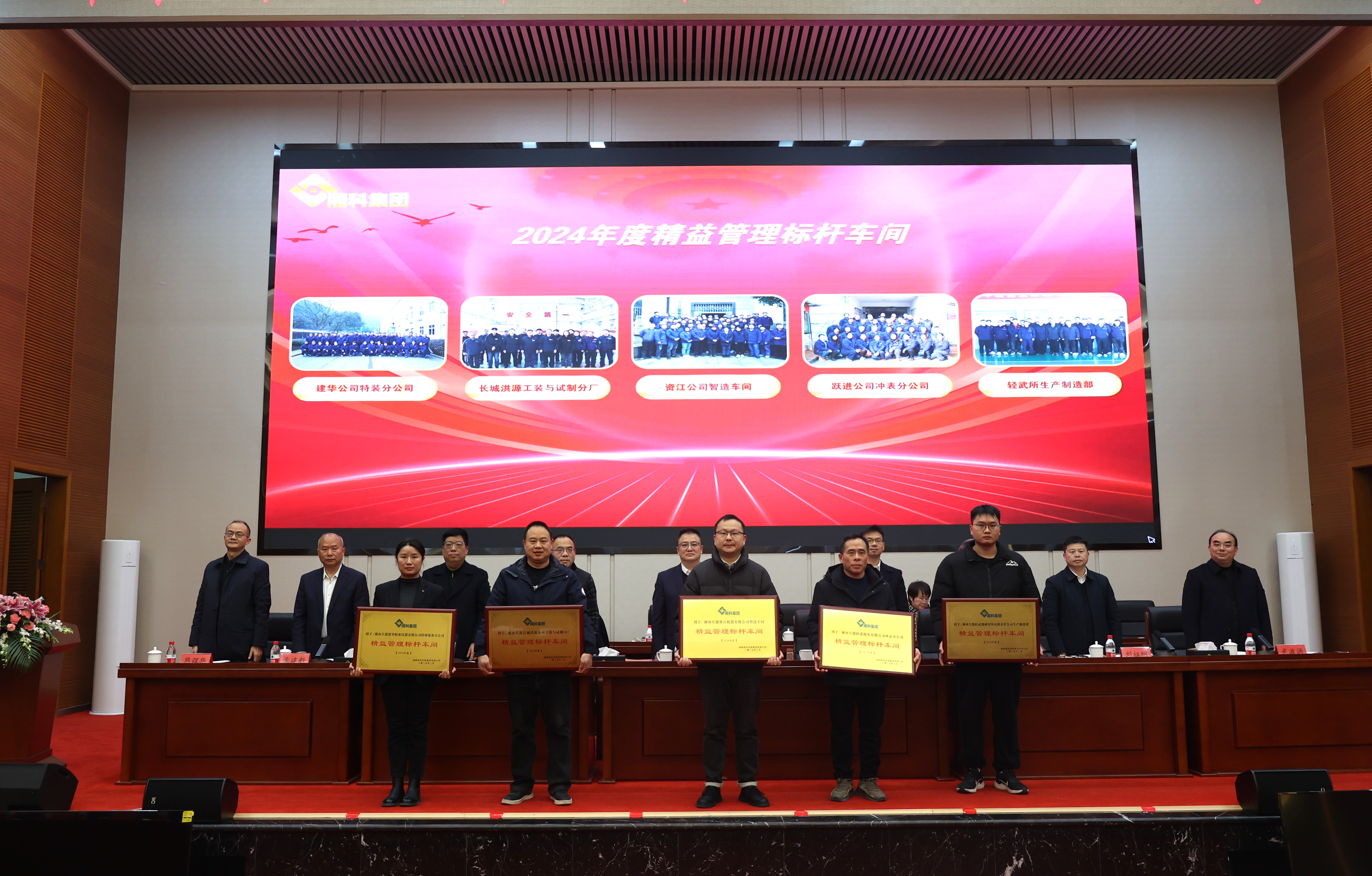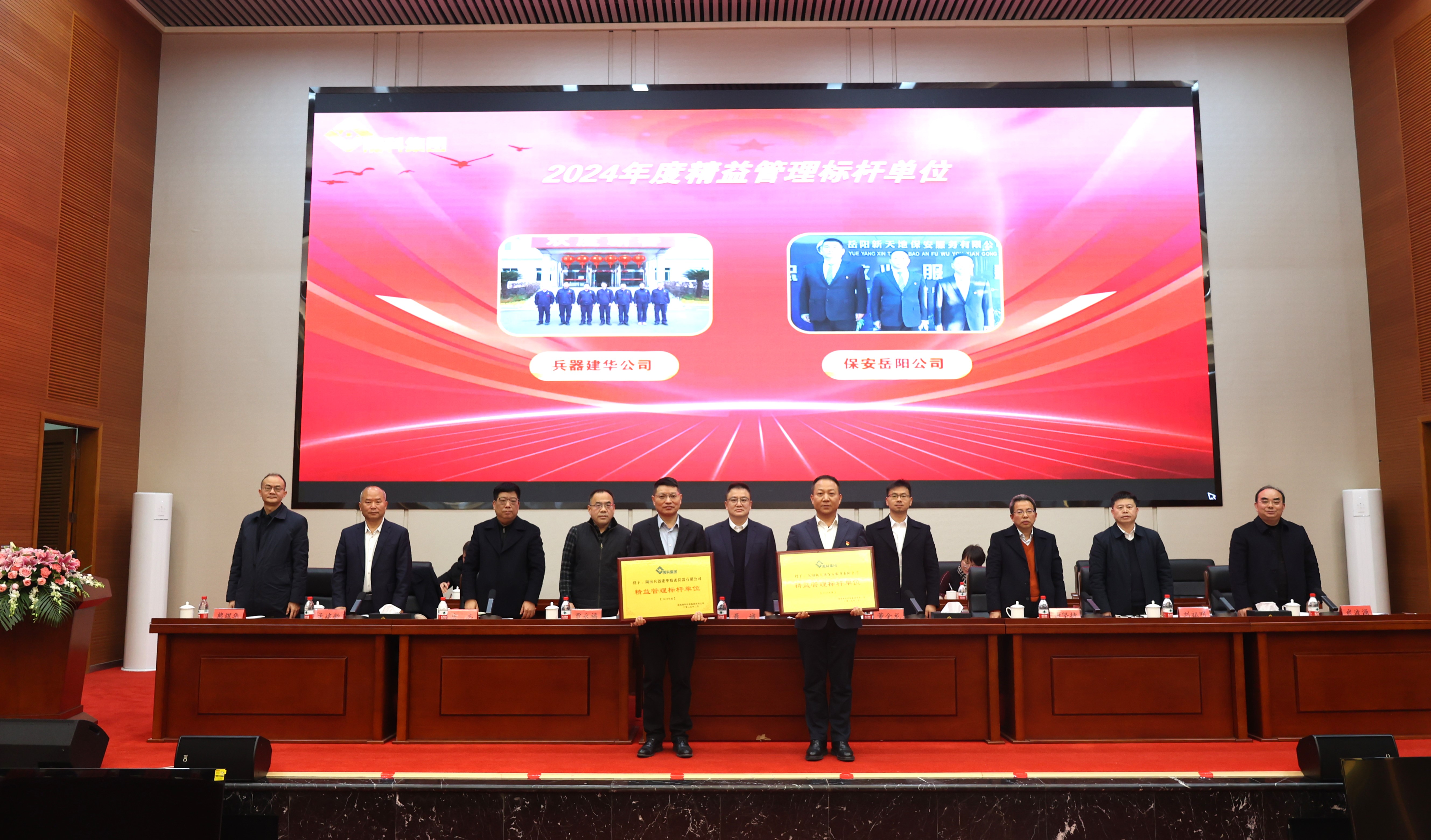 会上,贾永福宣读《关于表彰2024年度“卓越之星”的决定》《关于表彰2024年度精益管理标杆单位、标杆车间、标杆班组(大队)的决定》《关于表彰“小建议大奖励”金点子活动优秀项目的通报》,表彰了集团“卓越之星”,精益管理标杆单位和标杆班组等;湖南兵器等3家一级子公司领受责任书;兵器建华公司、兵器轻武所、保安岳阳公司、资管公司等4家单位作典型经验发言。