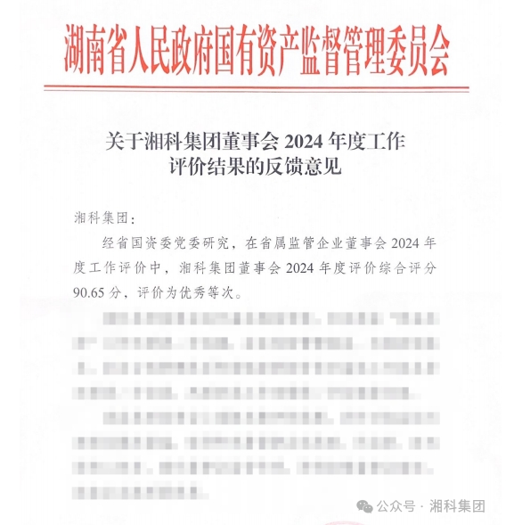 近日,湖南省国资委发布省属监管企业董事会2024年度评价结果,集团董事会获评优秀等次。这是集团持续深化董事会建设、完善公司治理取得的积极成效。