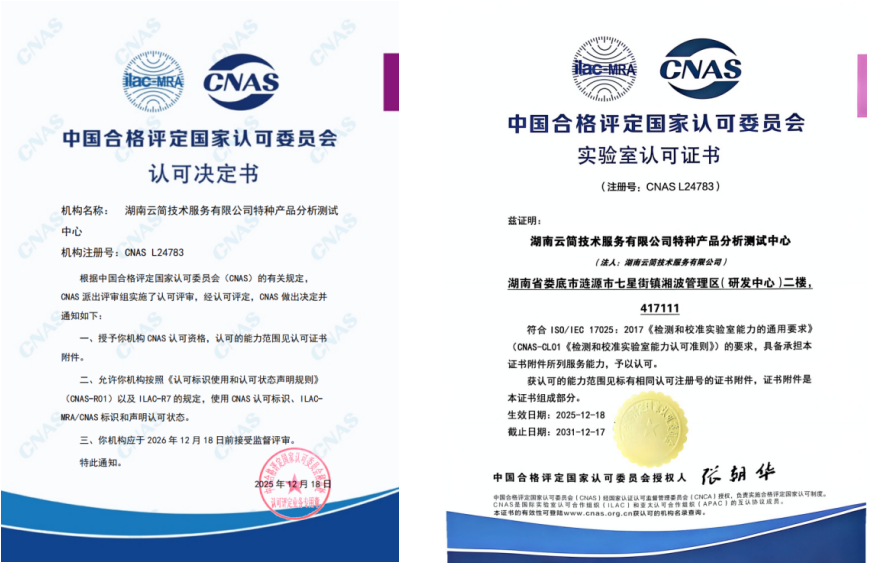 湖南云简特种产品分析测试中心将以此次认证为契机,持续推动分析测试中心向更高标准迈进,在人员培训、设备设施配备、质量控制、风险管理等方面有序开展各项管理和技术工作,持续提升分析测试中心的整体实力,不断优化和提升自身的检测技术和能力,为客户提供更专业、更可靠的检测服务,助力英国365集团公司高质量发展。