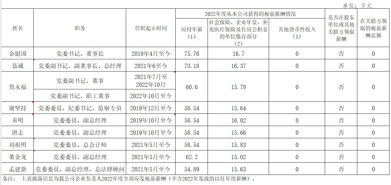 2022年度企业负责人薪酬公示